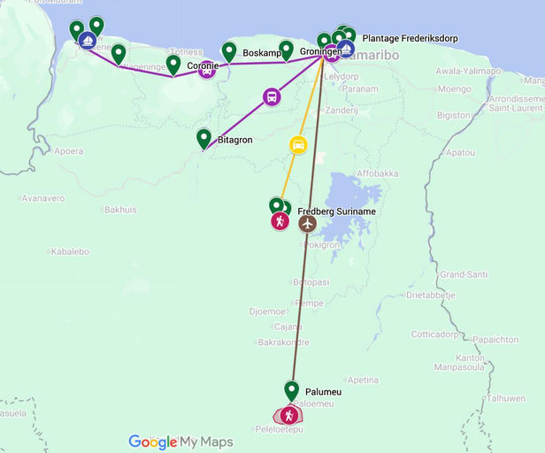 Salimos de Schiphol hacia Surinam y aterrizamos en el aeropuerto JAPengel por la tarde, donde nuestro equipo lo espera. Luego conduciremos unos 80 minutos hasta el Residence Hotel en Paramaribo.